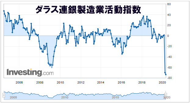 株価は新型コロナ対策の経済対策や金融緩和でちっとも実体を反映していないので、ダラス連銀製造業活動指数に注目しておく価値があると思います。